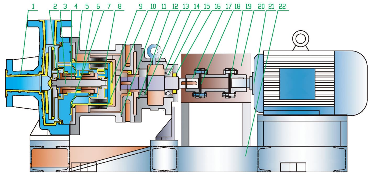 | ① Cuerpo de la bomba | Línea ZG F50/PFA | ⑨ Soporte | Línea magnética permanente/45# F50 | ⑰ Acoplamiento de bomba | 45# |