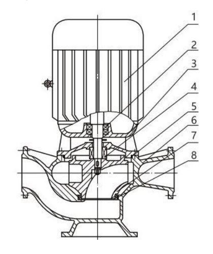 Similar to a valve in terms of flexibility, this vertical single-suction single-stage centrifugal sewage pump has an aligned intake and output for simple installation. A compact, stable construction is ensured by the direct coupling of the motor and pump. Solids up to 5× the pump diameter and fibers 50% of the diameter are effectively handled by its large-flow, anti-clogging hydraulic components. With cutting-edge hydraulics, it produces minimum noise and is optimized for excellent efficiency and energy savings. Outdoor operation without a machine room is made possible by a protective motor cover, which lowers expenses. It avoids motor overload by operating consistently within the rated head range. Perfect for high-performance, compact sewage handling.