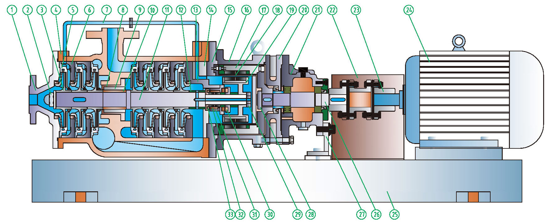 | ⑦ Línea de retorno | 304/316/316L | ⑱ Manga de distancia | 316/316L | ㉙ Tuerca del rotor | 304/316/316L |
