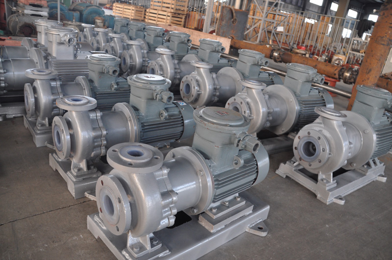 Solución: Seleccione una bomba centrífuga de fluoroplástico adecuada, que ofrezca alta eficiencia y rentabilidad, y que esté equipada con un sello mecánico refrigerado por agua. Si prefiere usar una bomba de accionamiento magnético de fluoroplástico, considere instalar un rotor magnético de alto rendimiento con imanes más potentes o reduzca el diámetro del impulsor para disminuir los requisitos de par.